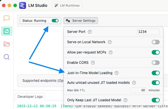 - In the Server Settings: Activate Just-In-Time Model Loading